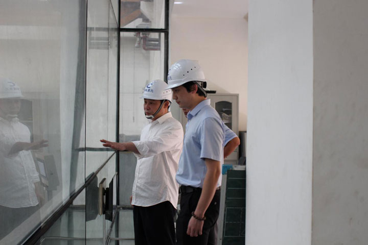 2018年5月14日下午,朱恒冰副总经理到郓城8868体育检查工作。郓城8868体育总经理曾勇,副总经理王鹏陪同。朱恒冰副总经理对郓城厂的垃圾吊操作室、参观走廊、生产现场、渗滤液处理站、渗滤液收集池进行了全面检查。