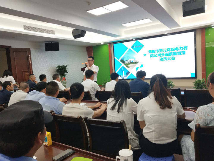 2018年5月16日晚,莆田市8868体育电力有限公司组织全体员工在社区共享中心培训室召开了全面质量管理动员大会,贯彻5月12日总部全面质量管理总动员会议精神,整个培训室座无虚席。