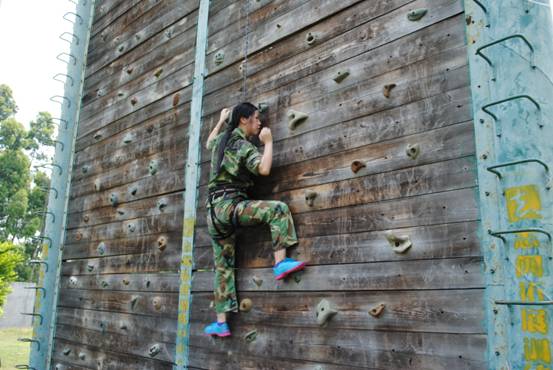 攀岩,一堵高15米的攀岩墙,仅仅是高度就让我们胆怯。但团队间的相互竞争,队员间的支持与鼓励,让我们不得不克服手脚的颤抖、心里的颤抖,全部努力的向上攀进。这个项目深深的提醒了我们:身体是革命的本钱,面对困难,要积极创造条件,寻找机会,要勇于挑战自我,超越自我,不轻易说“不”、不轻言放弃,坚持就是胜利。