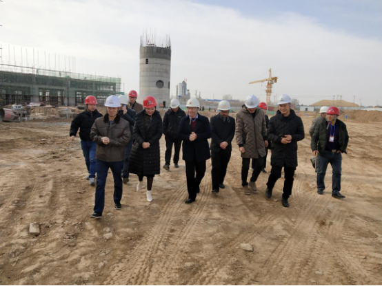 朱煜煊董事长一行实地检查了炉渣处理施工现场、飞灰填埋场选址地、烟囱等建设情况。在施工现场,庆阳8868体育叶红侠总经理就施工进展情况和年度任务完成目标进行了详细的汇报。听取汇报后,朱煜煊董事长对庆阳项目工作给予了充分的肯定,强调指出:项目全体人员一定要凝心聚力,鼓足干劲,全力推进项目工程建设。