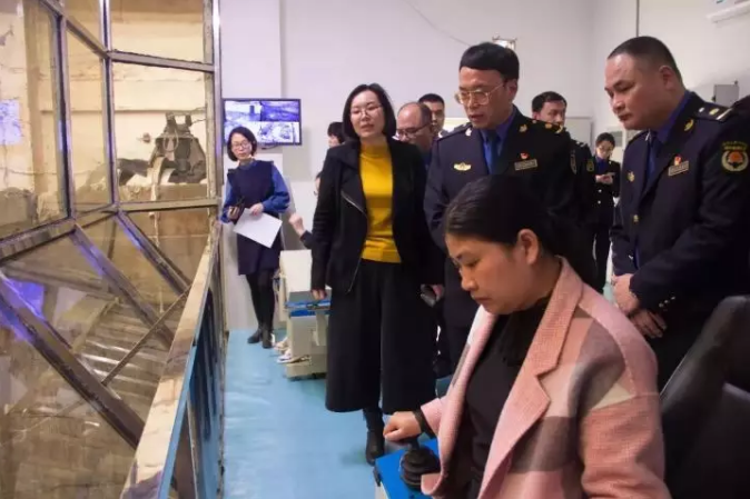 吴局长一行在垃圾吊操作室