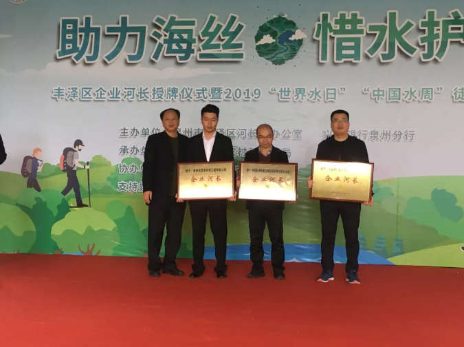 坚持节水优先,强化水资源管理!3月23日,泉州市丰泽区企业河长授牌仪式暨2019“世界水日”“中国水周”徒步活动在泉州北滨江公园沉洲园、汀洲园举行。