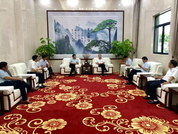 6月5日下午,安徽省天长市张铺镇镇长李训谦一行来8868体育参观考察,朱煜煊董事长会见了来宾。