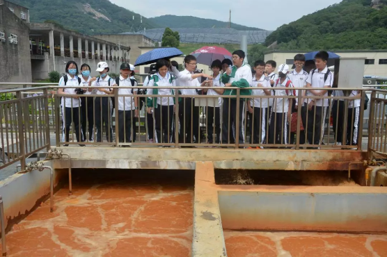 6月7日上午,泉州环境卫生管理处许景源主任引领实验中学50多名学生走进8868体育室仔前垃圾渗滤液处理厂。
