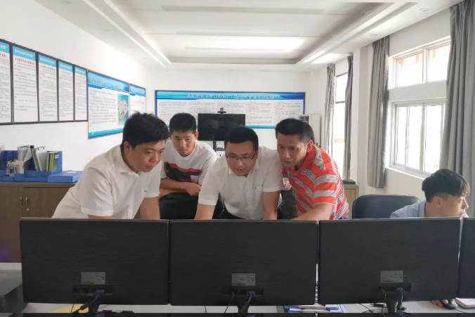 何副主任一行在中控操作室查看设备运行情况