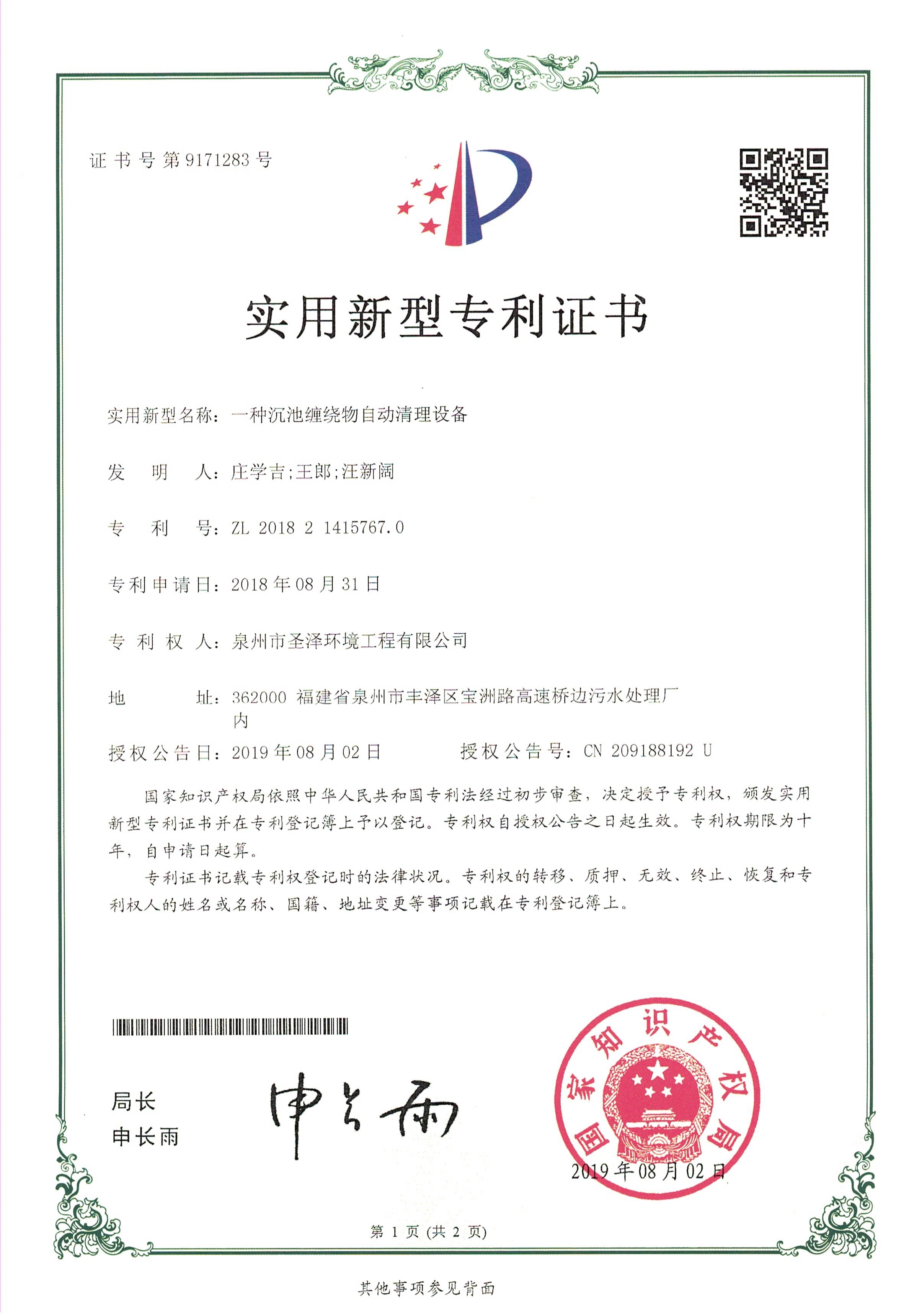 一种沉池缠绕物自动清理...